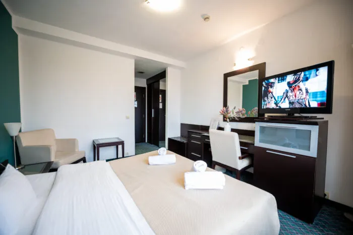 Zakoračite u svet udobnosti i praktičnosti uz našu Standardnu Dvokrevetnu Soba. Dizajnirana da pruži udoban i funkcionalan prostor za vaš boravak, ova soba nudi spoj jednostavnosti i udobnosti koji je idealan kako za putnike u poslovnom aranžmanu, tako i za one koji putuju iz zadovoljstva.